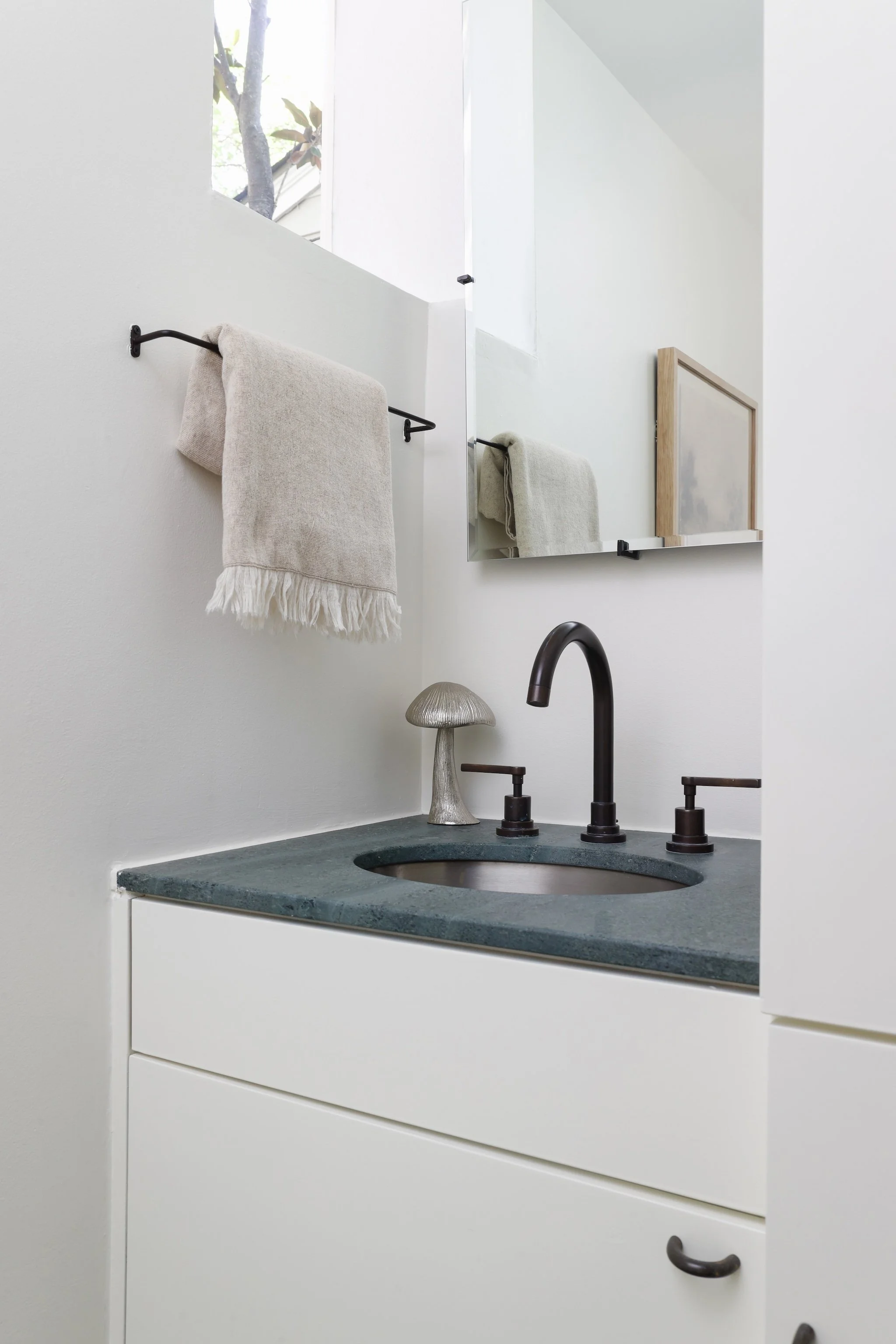 Inside, the spaces unfold like a well-composed symphony. The patterns, materials, and rhythms of the design have to be experienced to be understood. Even the best pictures and images don’t do this magical property justice. Light dances through thoughtfully placed windows, bathing each room in a warm, natural glow. Artistic storage and clean lines enhance the flow of the home, offering efficiency without compromise. Andersson’s signature touches—such as floor-to-ceiling bookshelves in place of traditional walls—invite both beauty and purpose into every square inch.