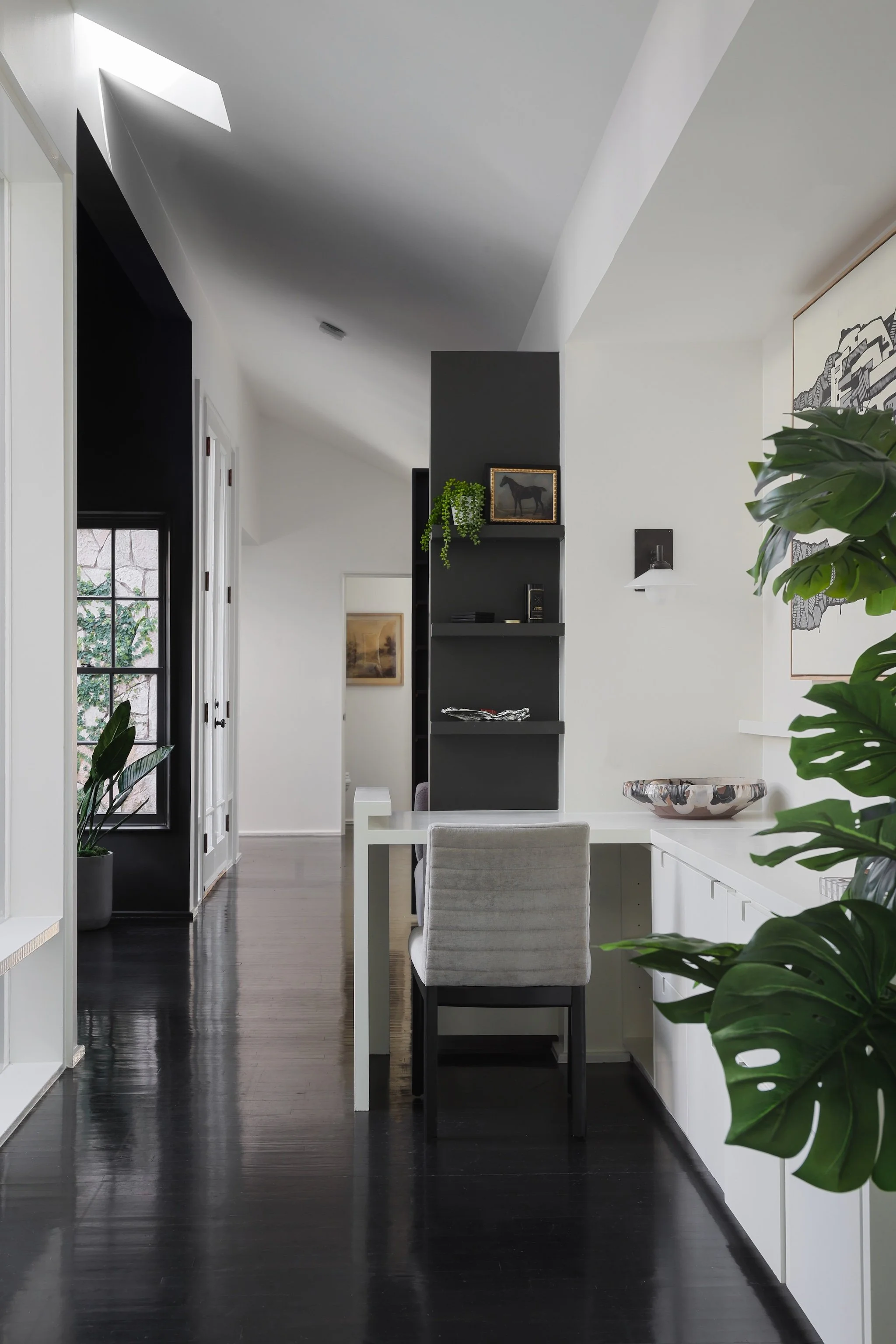 The heart of the home reveals itself in its enchantingly intelligent layout. This residence is as efficient as it is beautiful, with thoughtfully designed bedrooms and multiple work-from-home desk and study spaces tucked seamlessly into the design The flow of the original house to the original addition is seamless as it is built around a charming, European style courtyard with legacy oaks that join the living spaces with modern yet classic sensibilities of a long, interflowing library study. From the welcoming foyer with its garden-facing sidelights to the elegant study lined with custom shelving, the design invites calm, creativity, and connection to nature. Even the original oak floors—repainted and refreshed—speak to a legacy of thoughtful stewardship.